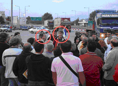 Ο περιώνυμος στη Θεσσαλία Αστέριος Χάμος (στον αριστερό κύκλο) δίπλα στον επικεφαλής της «Επιτροπής Αγώνα» και άλλων «πλατιών» κινημάτων του ΣΥΡΙΖΑ στην Πιερία Ηλία Τσολακίδη (στο δεξιό κύκλο)